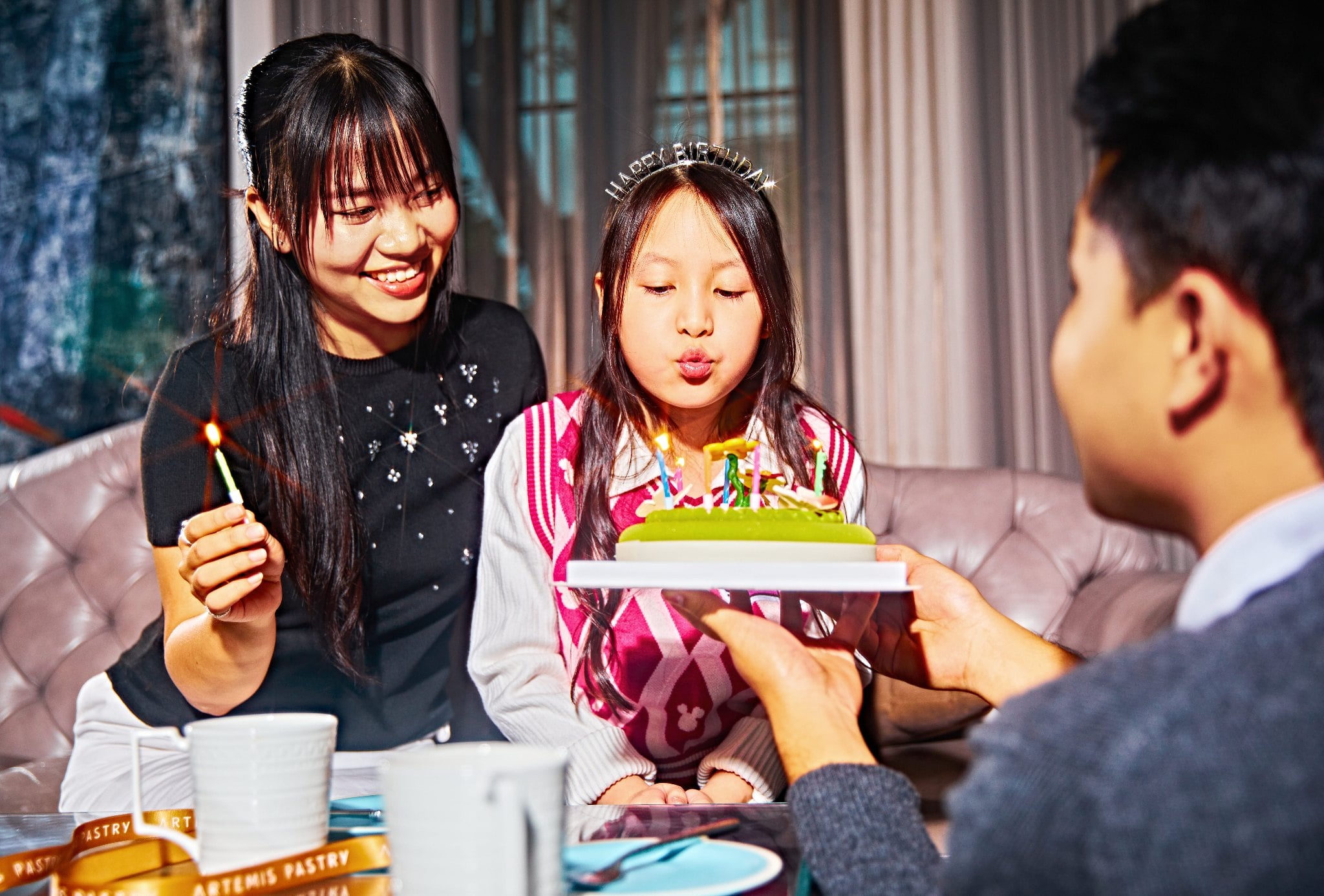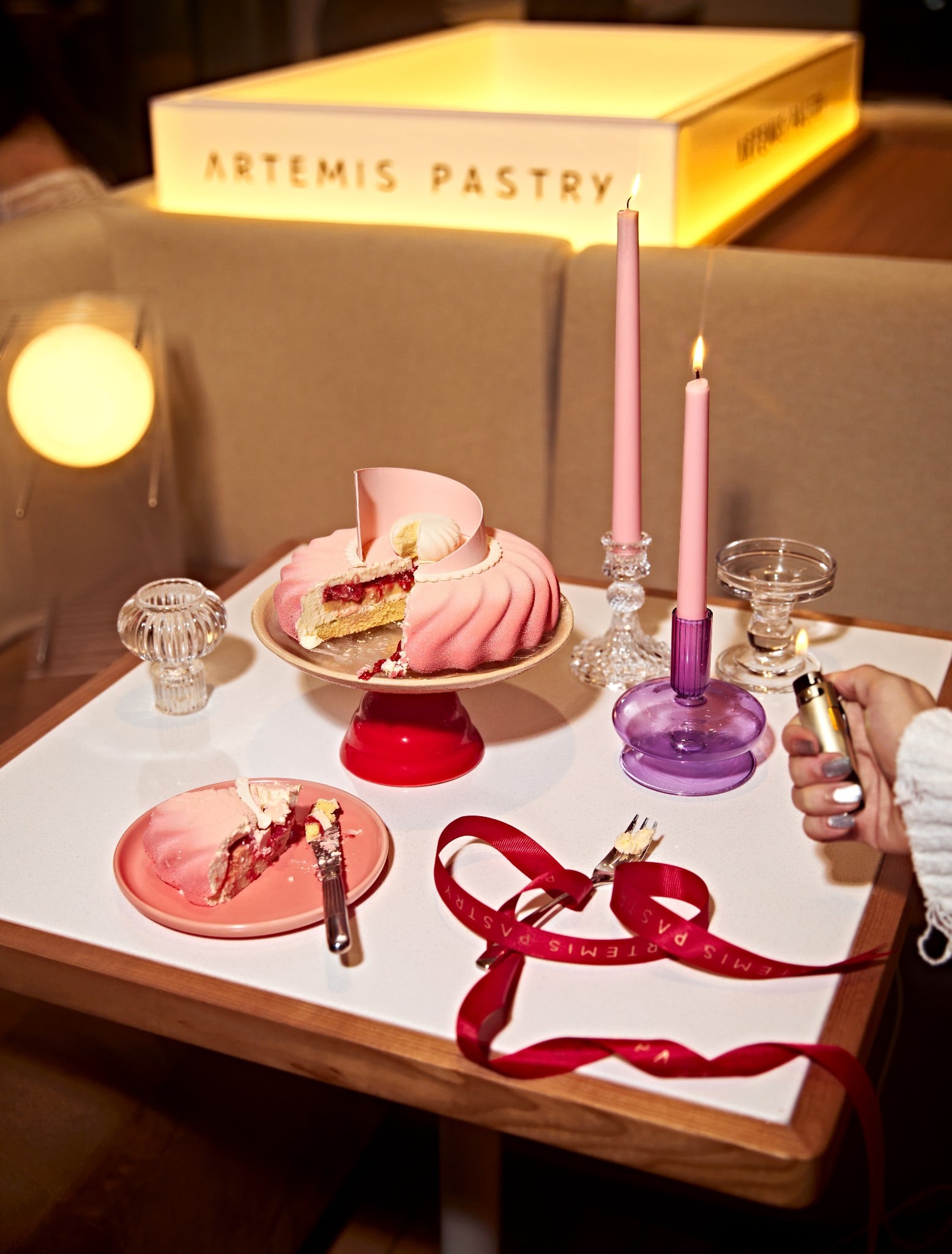 (Hình ảnh minh họa cảnh thắp nến bên cạnh bánh Artemis Pastry)
