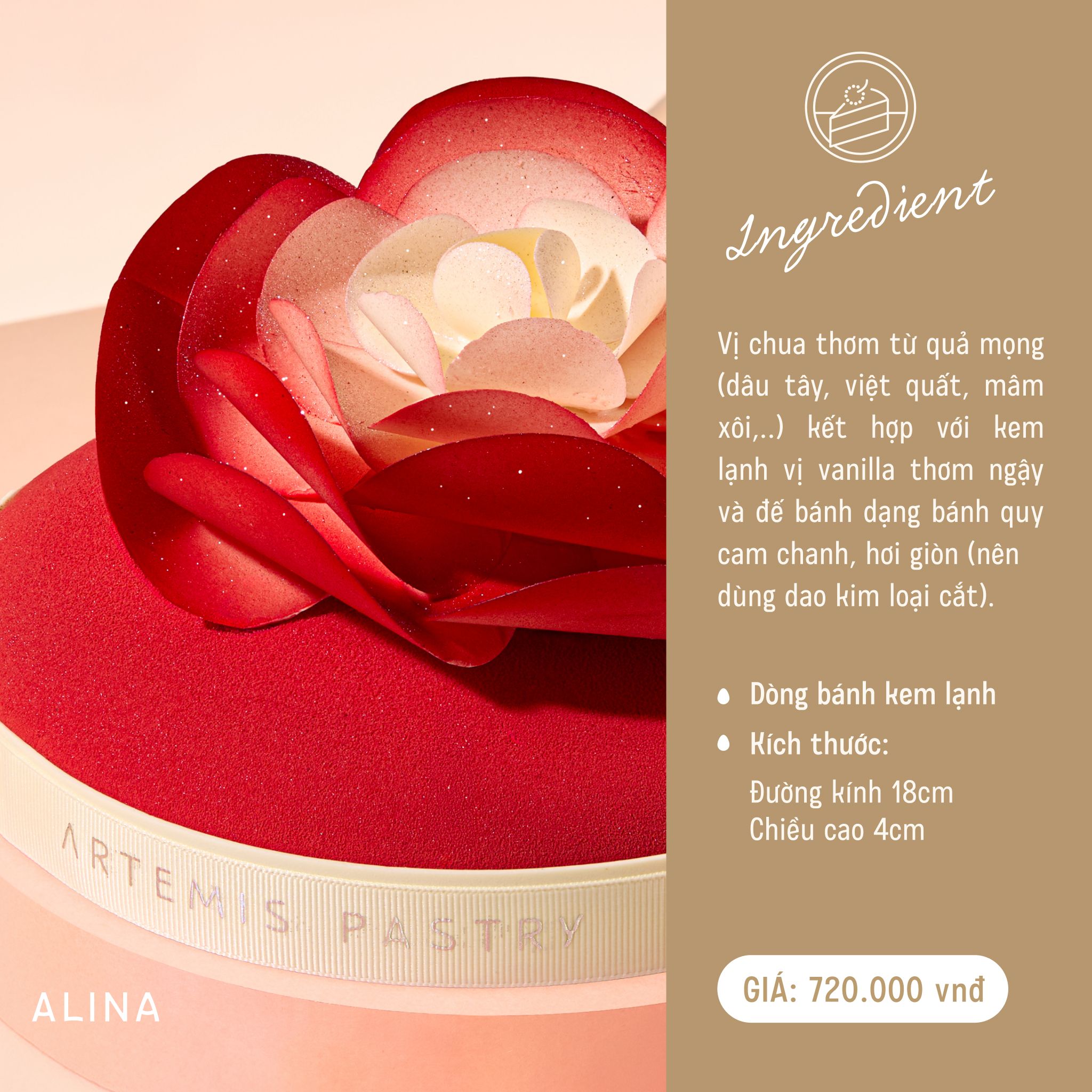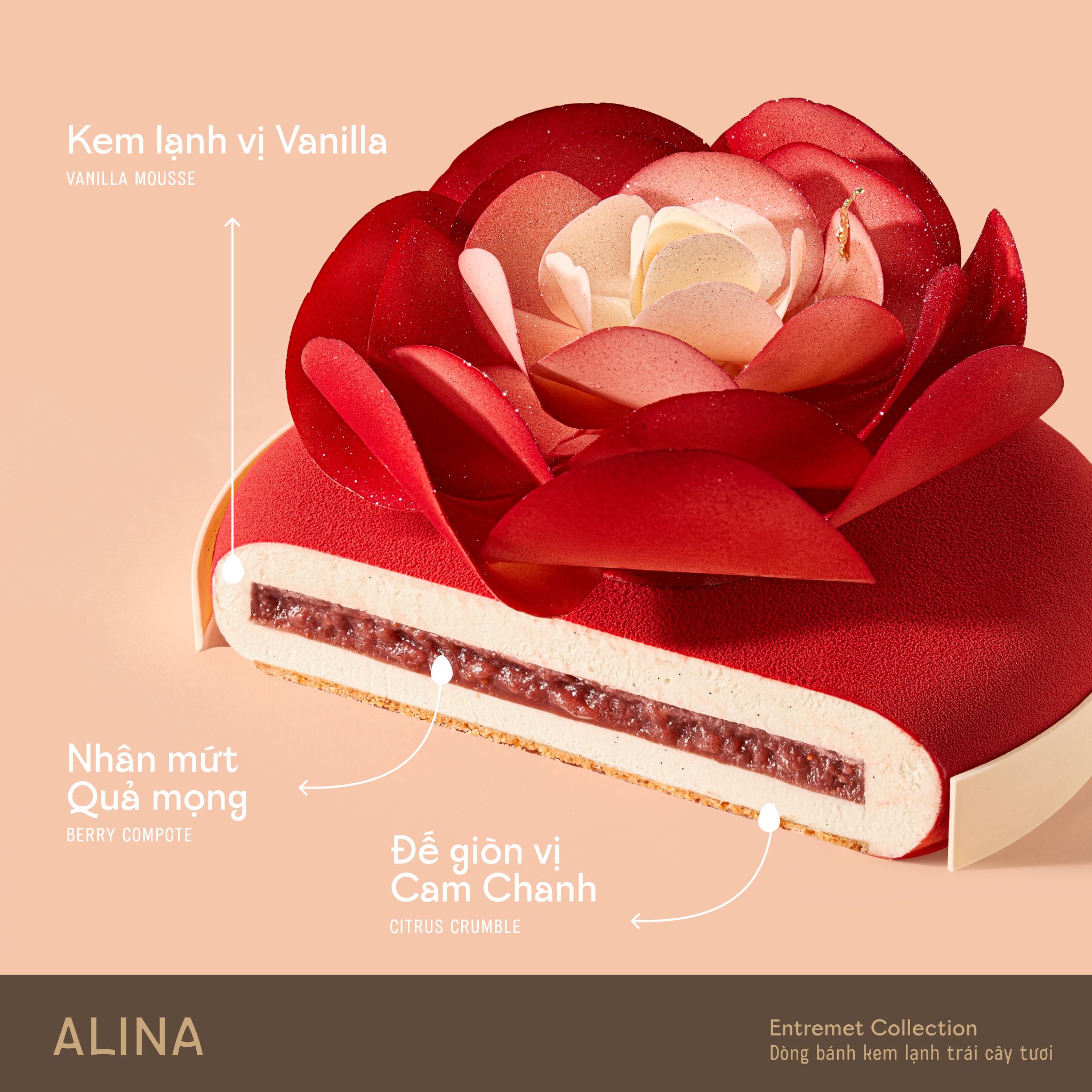 Vị chua thanh nhẹ của các loại quả mọng ( dâu tây, mâm xôi, việt quất... ) kết hợp sự ngọt dịu nhẹ của kem mousse Vani, đế bánh dạng bánh quy Cam Chanh.