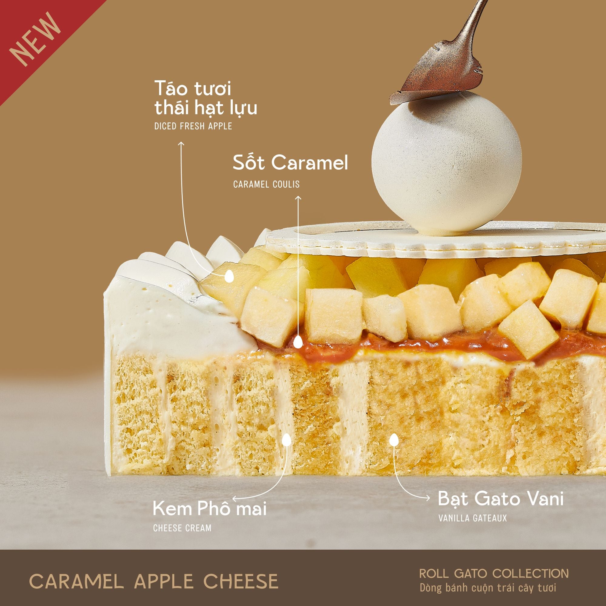 BÁNH GATO CUỘN CARAMEL, PHÔ MAI & TÁO ĐỎ