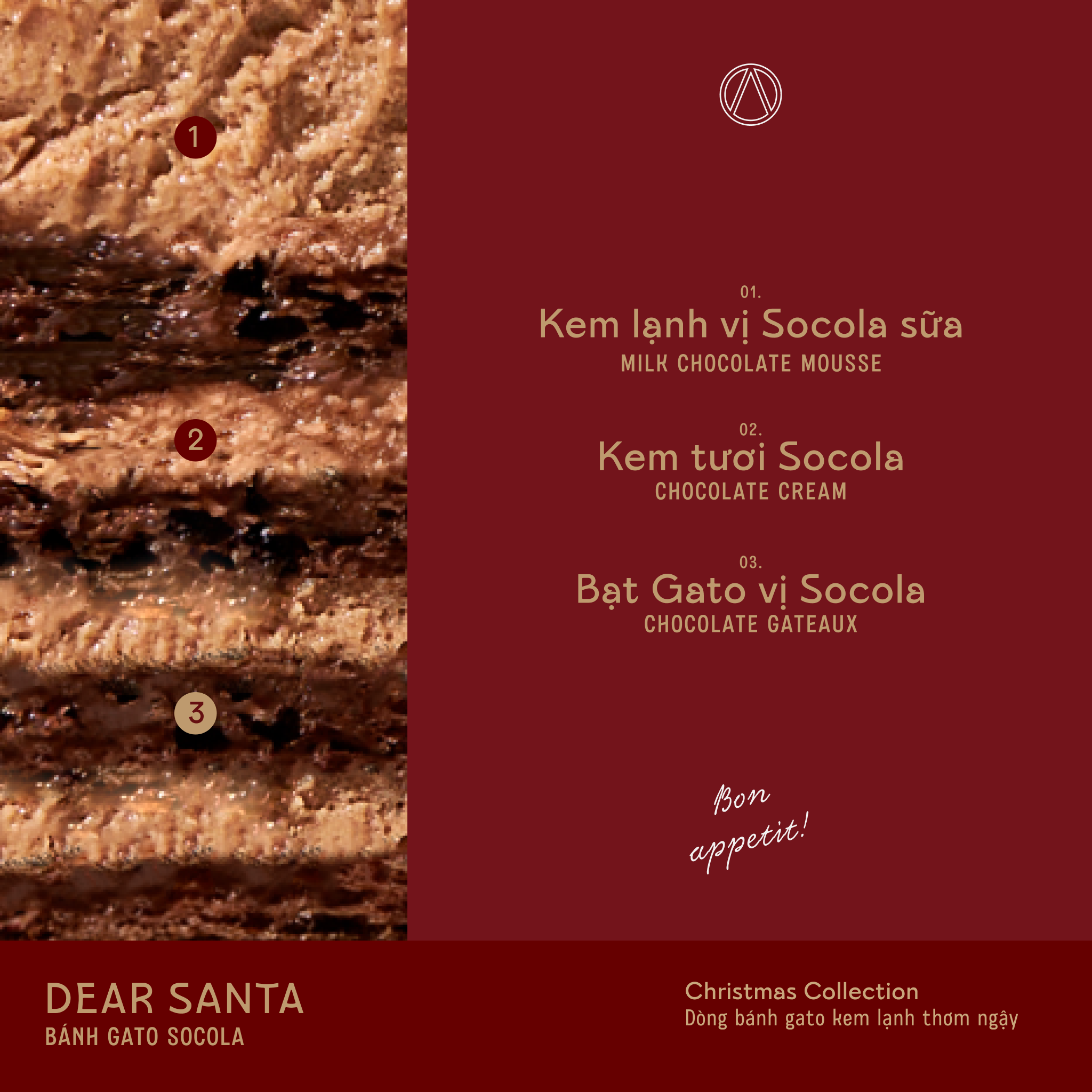 Vị thơm ngậy bởi nhiều lớp bạt gato socola đen, hòa quyện với lớp kem lạnh vị Socola kết hợp cùng hương vị đắng nhẹ của lớp Socola đen phủ bên ngoài.