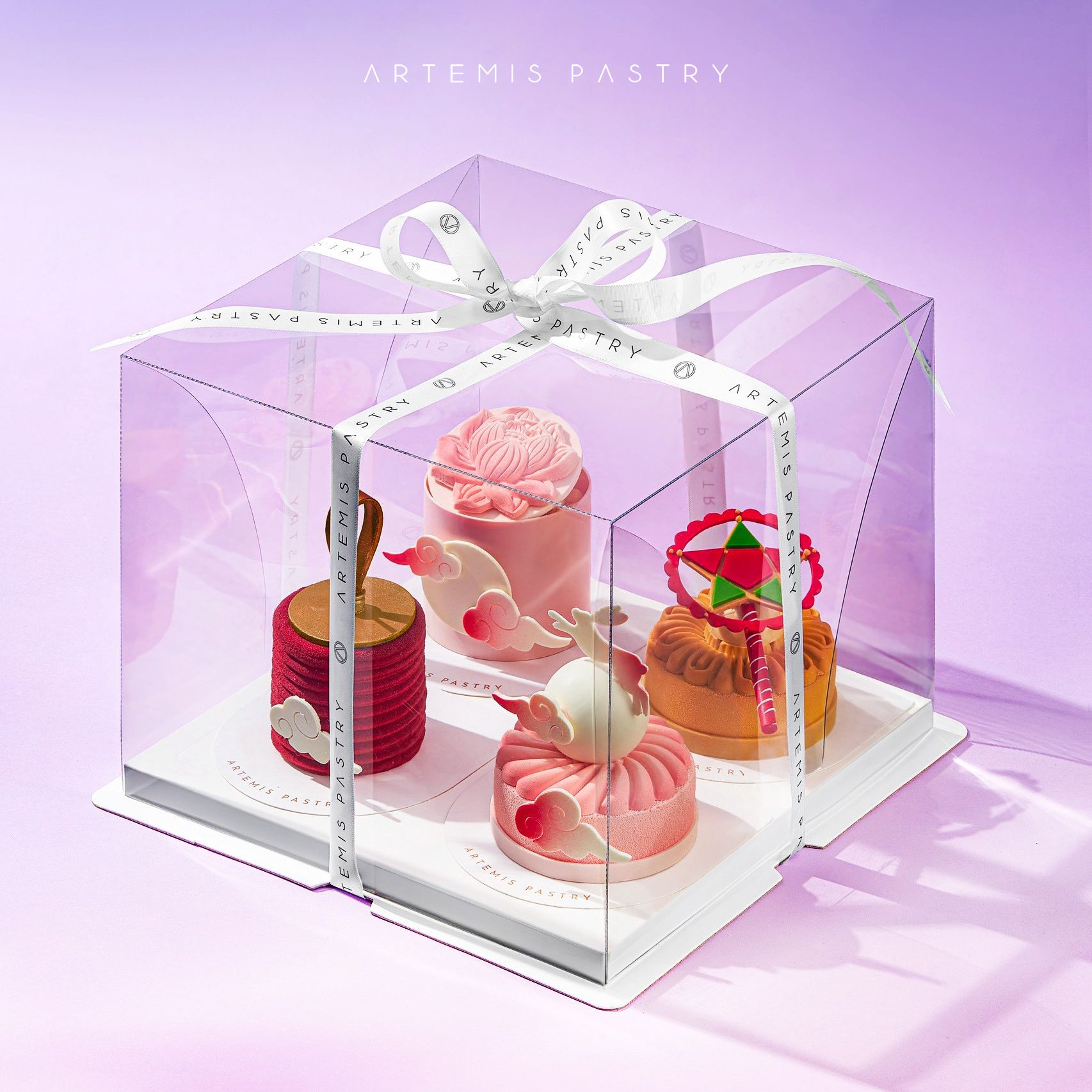 Bánh sẽ được đóng trong hộp bánh sinh nhật mica đi kèm 1 bộ dao dĩa nến, buộc gói ruy băng và 1 tấm thiệp chủ đề Trung thu được tuỳ ý viết lời chúc của bạn.