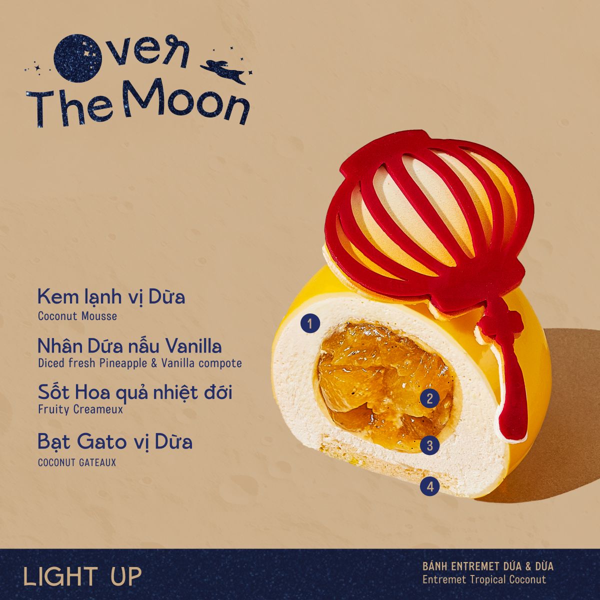 Là dòng bánh mousse dừa nhân dứa.Vị bánh nghiêng về vị nhân dứa nấu cùng vani, thơm và bùi từ lớp kem dừa. Lúc ăn sẽ cảm nhận độ giòn của dứa và mềm mượt bởi lớp kem dừa
